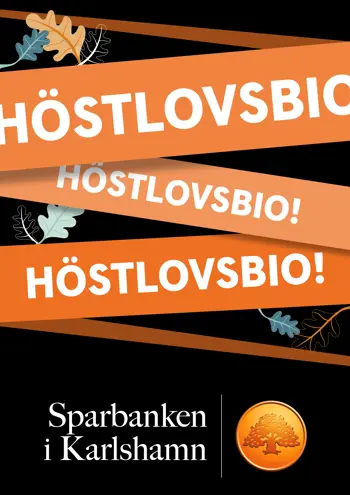 Under höstlovet bjuder Sparbanken i Karlshamns stiftelser alla barn på bio för endast 10 kr den 28/10 i Olofström och den 30/10 i Karlshamn.