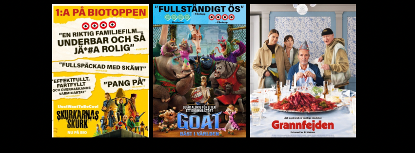 Alla aktuella och kommande filmer som visas eller ska visas på våra biografer finns att läsa om här på hemsidan.